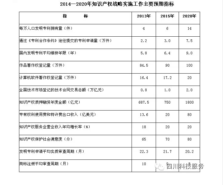 ——知識(shí)產(chǎn)權(quán)創(chuàng)造水平顯著提高。知識(shí)產(chǎn)權(quán)擁有量進(jìn)一步提高,結(jié)構(gòu)明顯優(yōu)化,核心專利、知名品牌、版權(quán)精品和優(yōu)良植物新品種大幅增加。形成一批擁有國(guó)外專利布局和全球知名品牌的知識(shí)產(chǎn)權(quán)優(yōu)勢(shì)企業(yè)。
